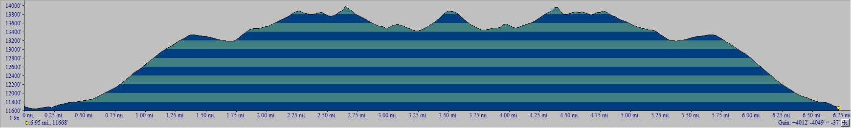I hustled down the ridge and up to Red Mountain in no time at all – making it over in just under 25 minutes from Culebra. Views from Red Mountain were a little better, so I took a nice 360 panoramic from there, signed the register, and headed back over to Culebra.